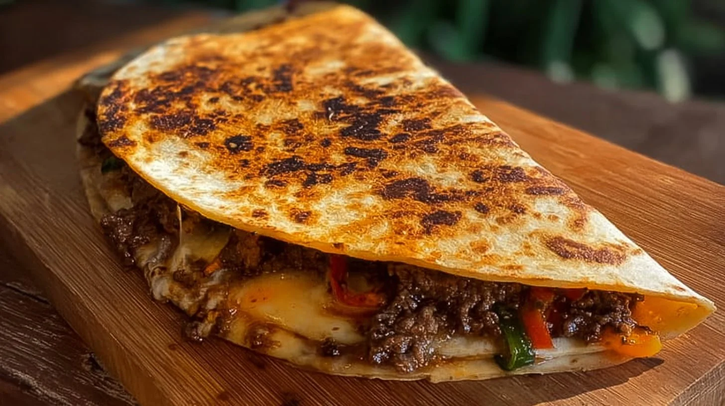 A hot and crispy beef quesadilla filled with seasoned ground beef and cheese, perfect for busy weeknights or game days.