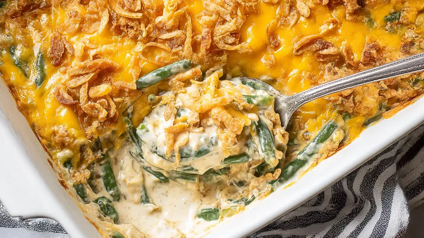 Use fresh green beans for extra texture — just blanch them for 2–3 minutes before mixing. Add crispy bacon bits on top for a smoky Southern twist. Prepare ahead: assemble the casserole a day before, refrigerate, and bake right before serving.