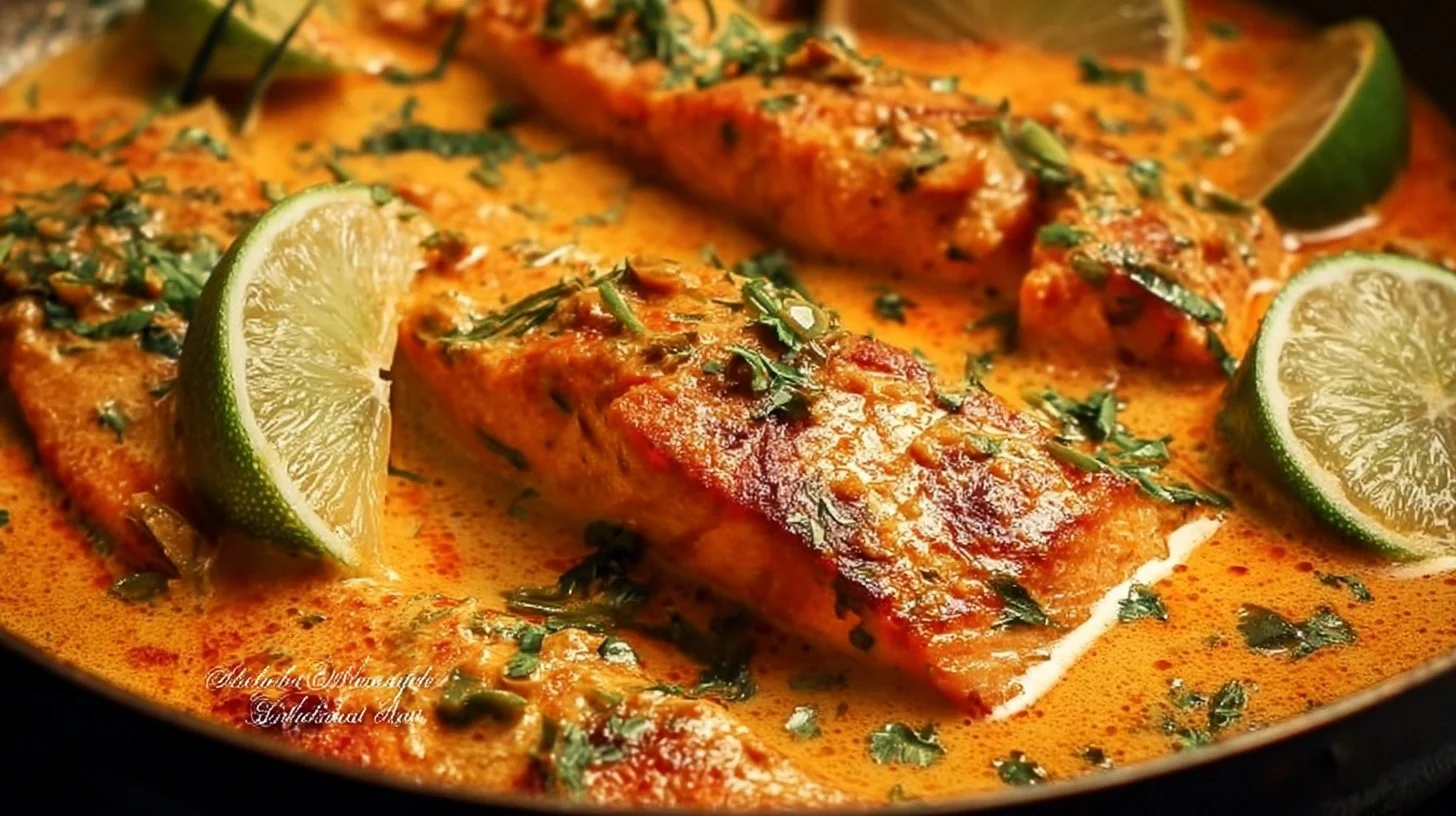 A delightful one-pan salmon dish in a rich coconut curry sauce, perfect for busy weeknights.