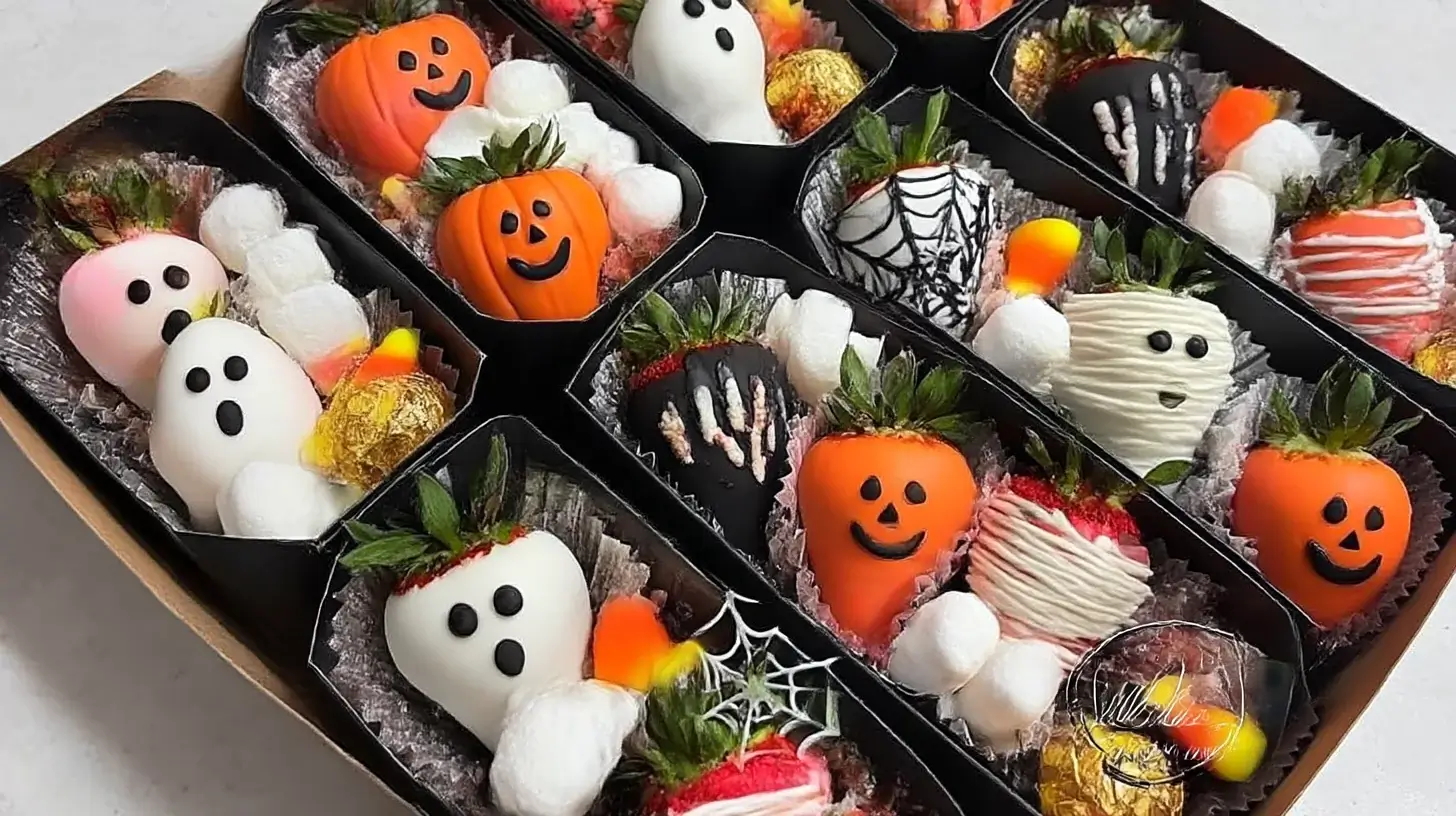- Pumpkin & Jack-O-Lantern Strawberries: Dip in orange candy melts, let dry, then pipe black faces.