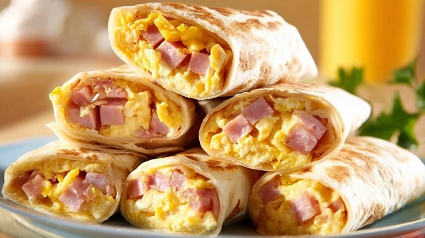 Fast, filling breakfast burritos filled with scrambled eggs, ham, and melted cheddar cheese—perfect for busy mornings and meal prep.
