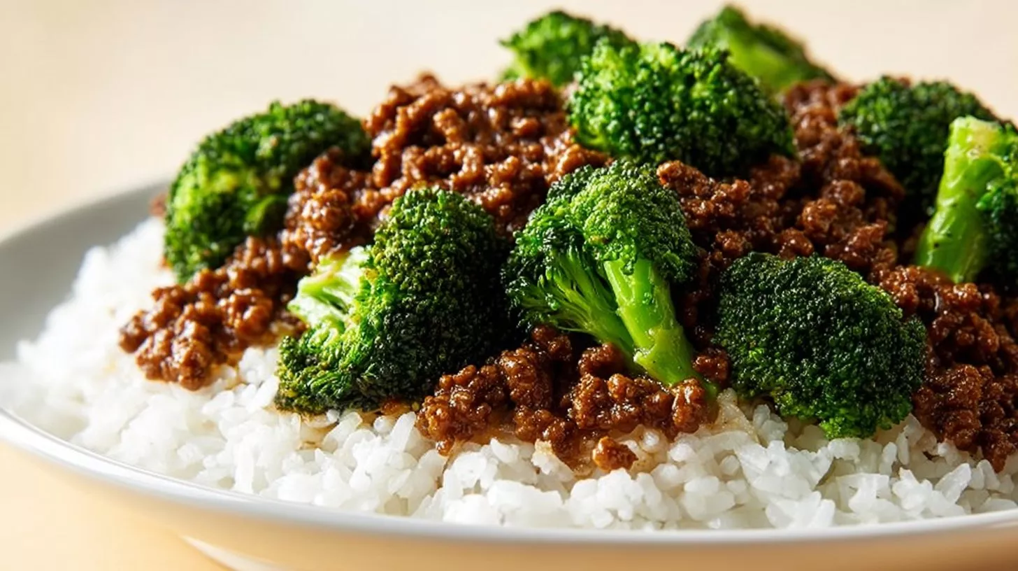 A delightful combination of sweet honey garlic sauce and savory lean ground beef with crisp broccoli, served over rice. Perfect for quick weeknight dinners.
