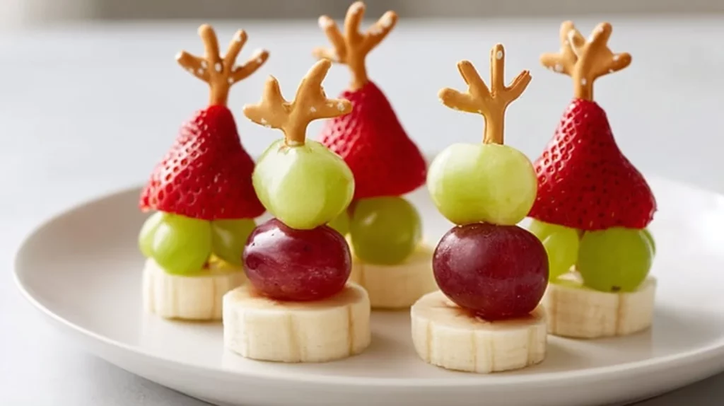 Festive Elf Hat Strawberry Skewers decorated for the holidays