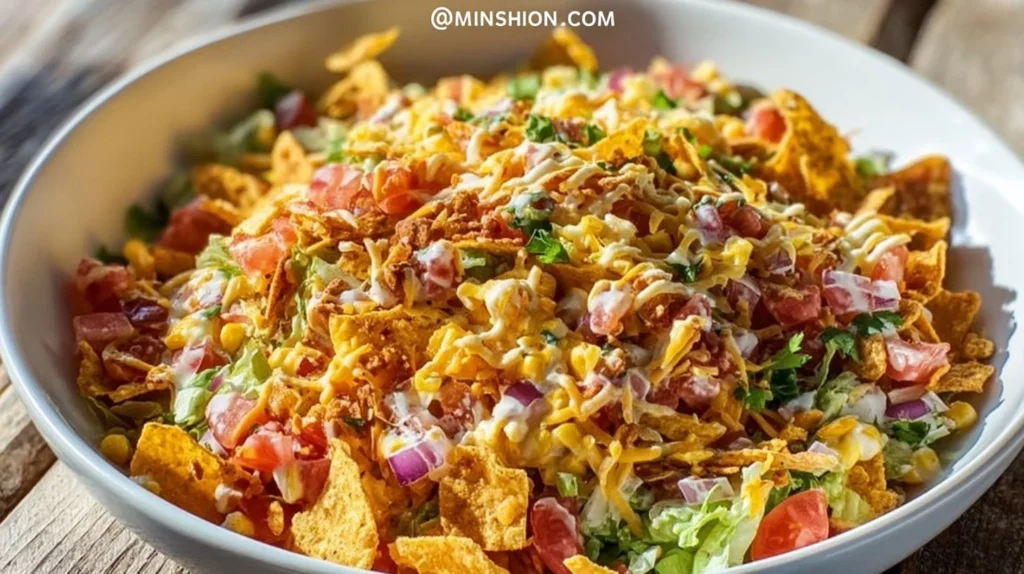 Fritos Chili Cheese Salad with colorful ingredients and toppings